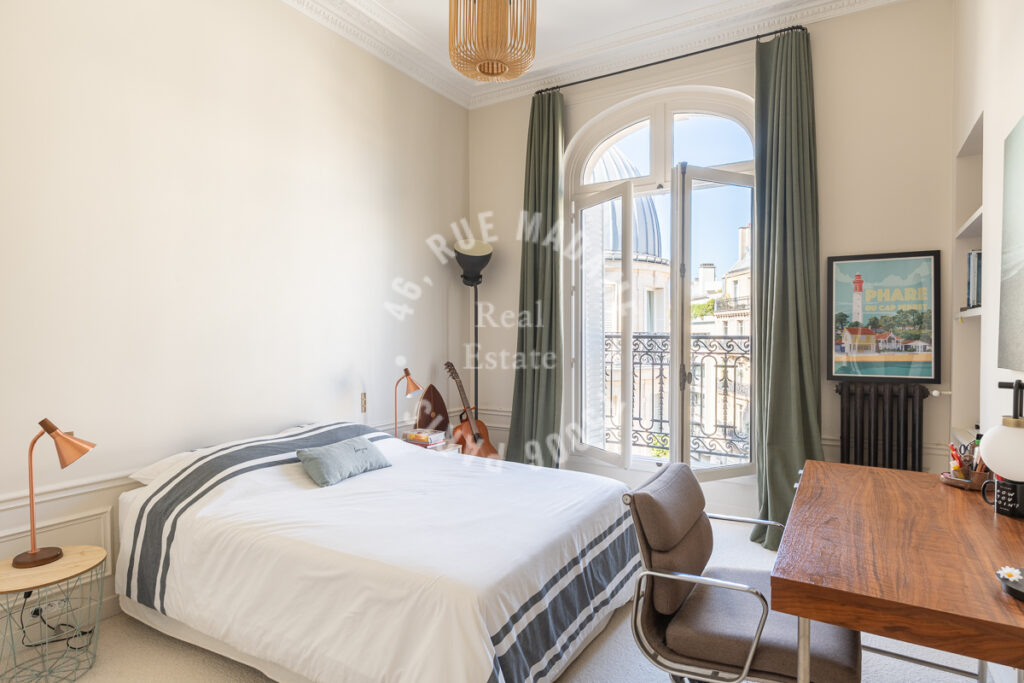 A 100 m du Luxembourg, dans une belle copropriété début XXème, appartement traversant de 150 m2. Au 4eme étage, l’appartement comprend une galerie d’entrée, un bel espace de réception, une cuisine, une chambre parent, deux chambres enfants, une salle de bains, une salle d’eau. Cet appartement bénéficie de beaux volumes (3,30 hsp), d’une parfaite distribution. En annexe, une chambre de service en sus du prix 130 000 euros et un parking au pied de l’immeuble.