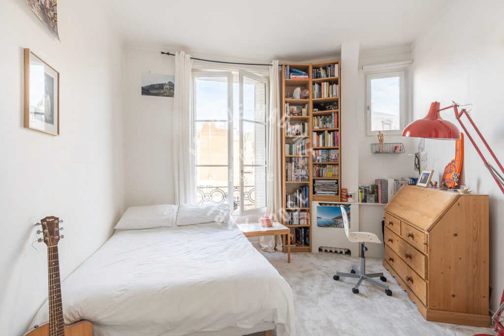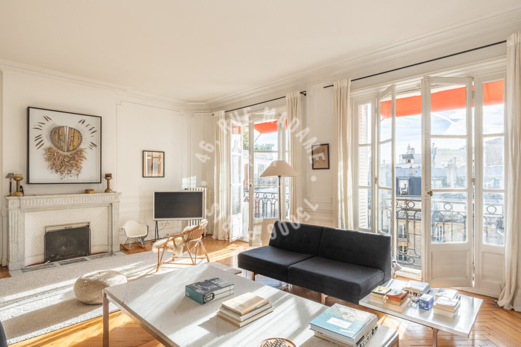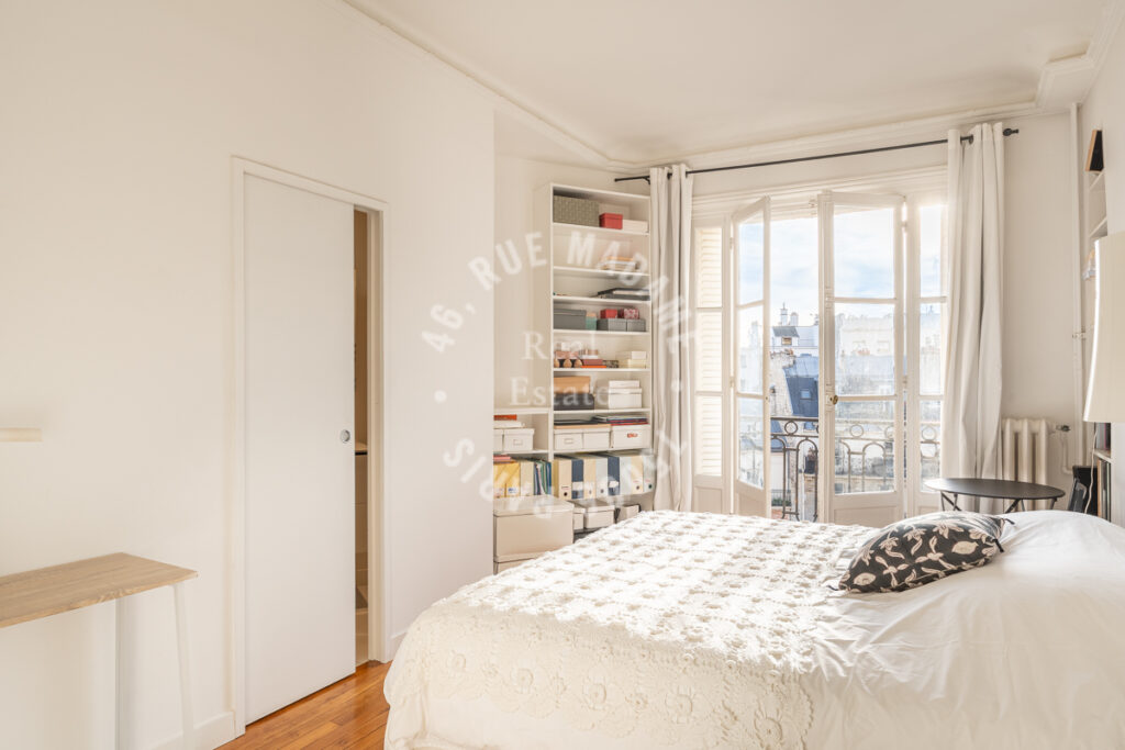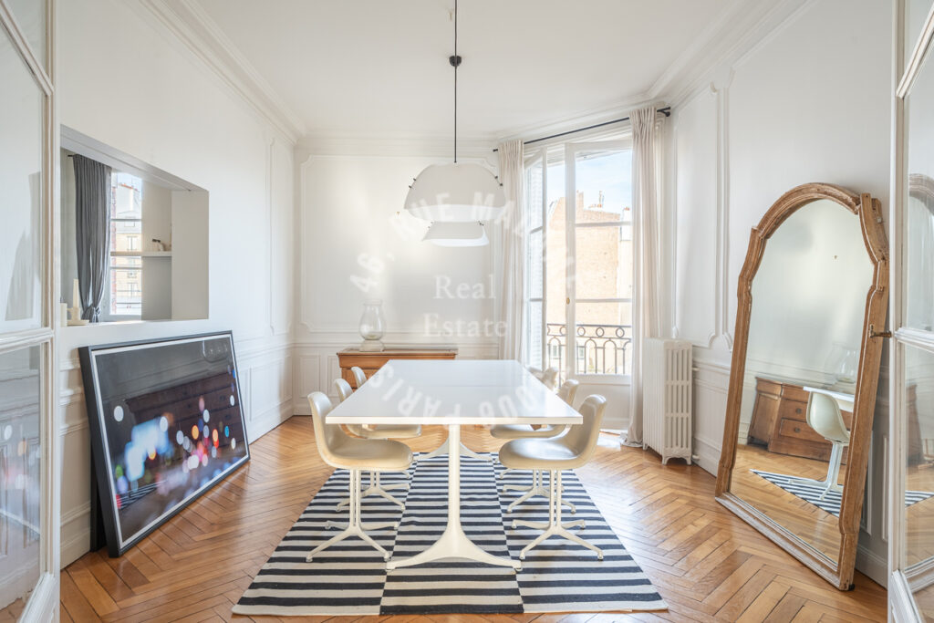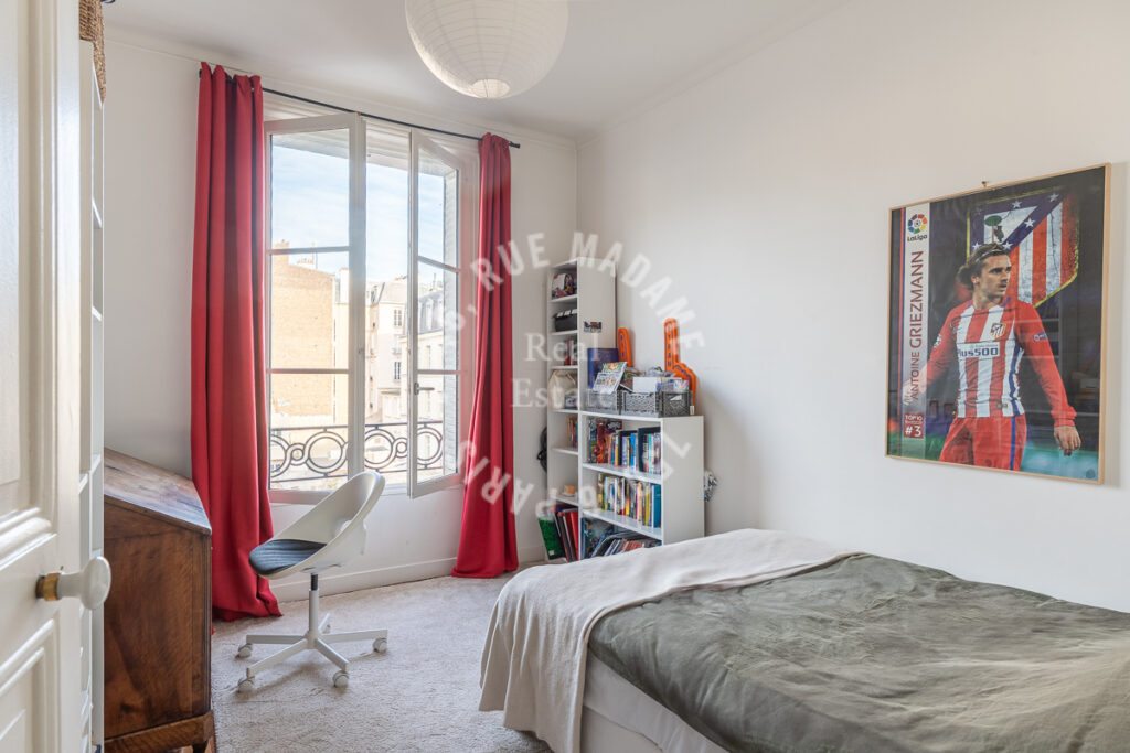 Dans une rue calme du quartier Passy, au sixième étage d’un immeuble début XXème, bel appartement inondé de lumière de 153,72 m2 comprenant une galerie d’entrée, une double réception, une salle à manger, une cuisine ouverte, quatre chambres, une salle de bain et deux salles d’eau et une chambre de service de 7 m2. Triple exposition et jolis éléments anciens conservés. Appartement en bon état. Distribution parfaite.