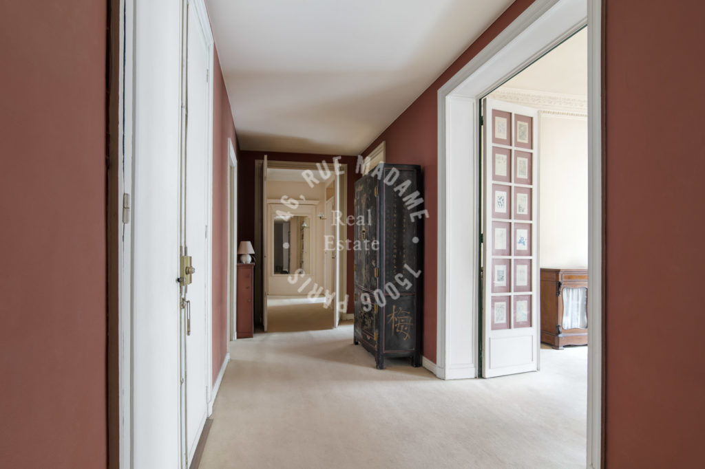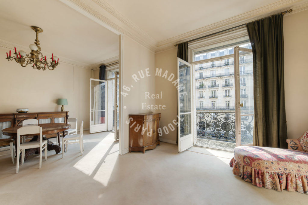 Elégant appartement familial, traversant de 155 m2 avec balcon. 4 chambres. Volumes. Lumière et calme. A refaire.