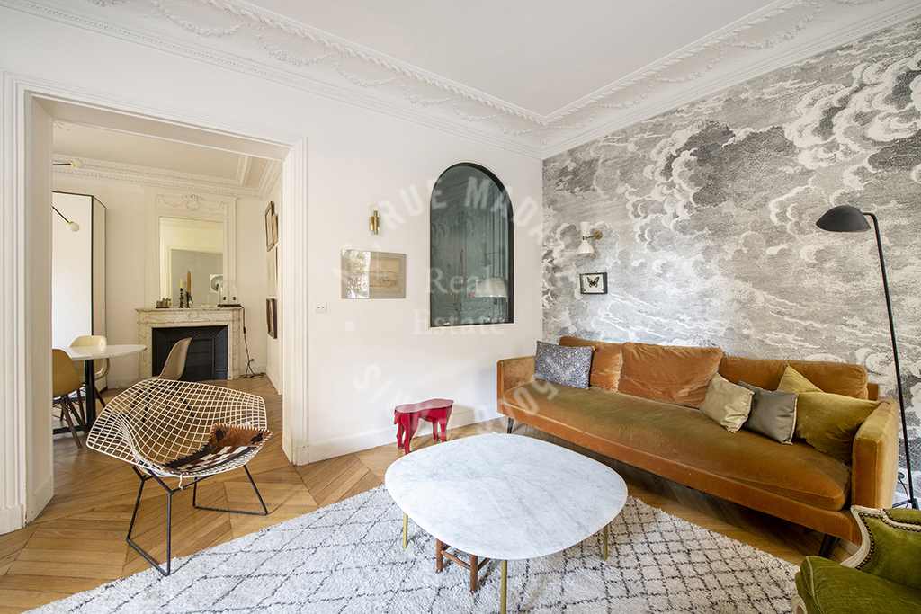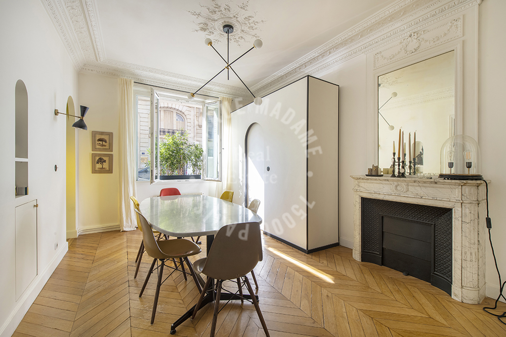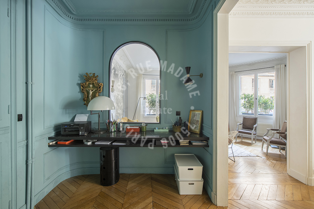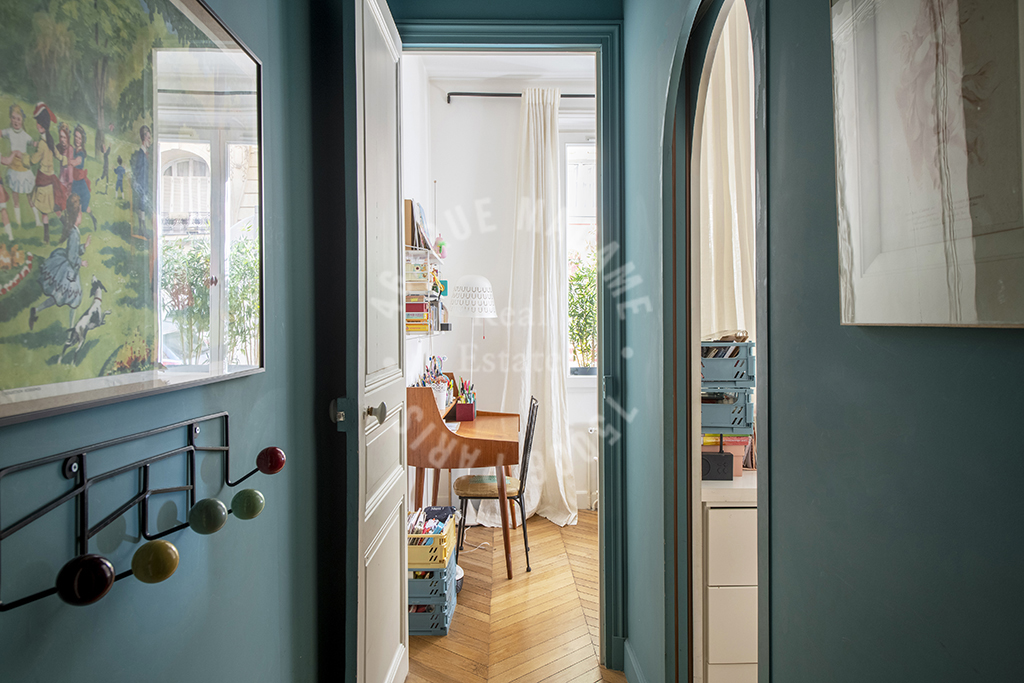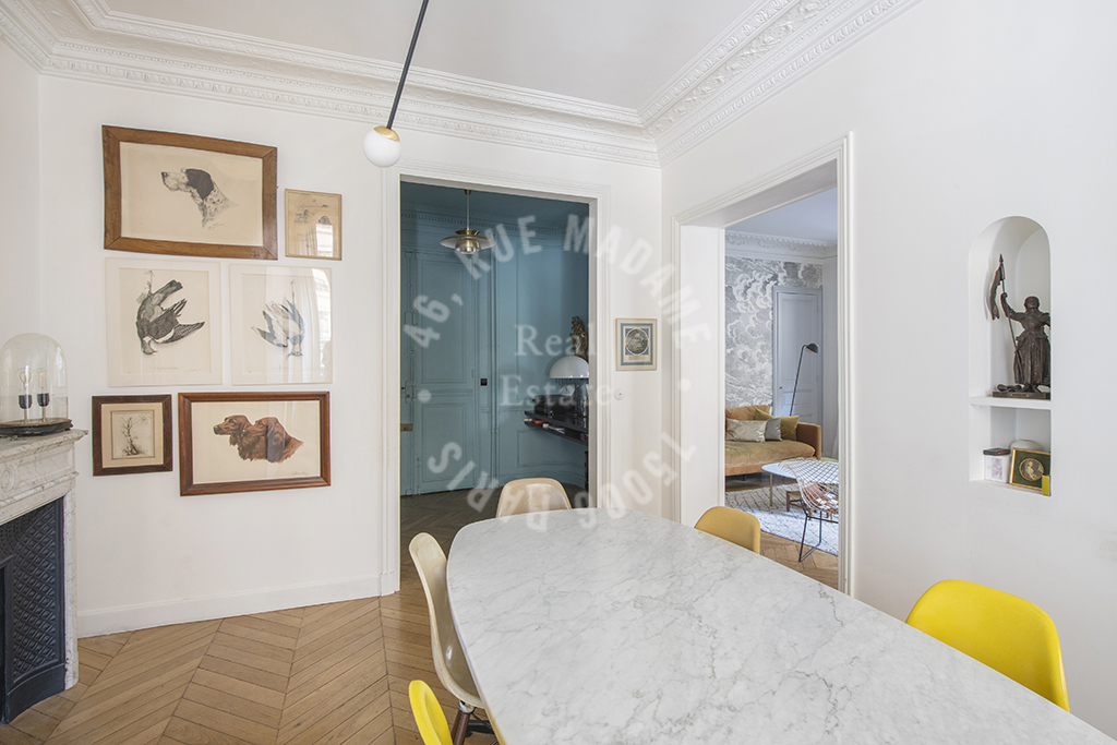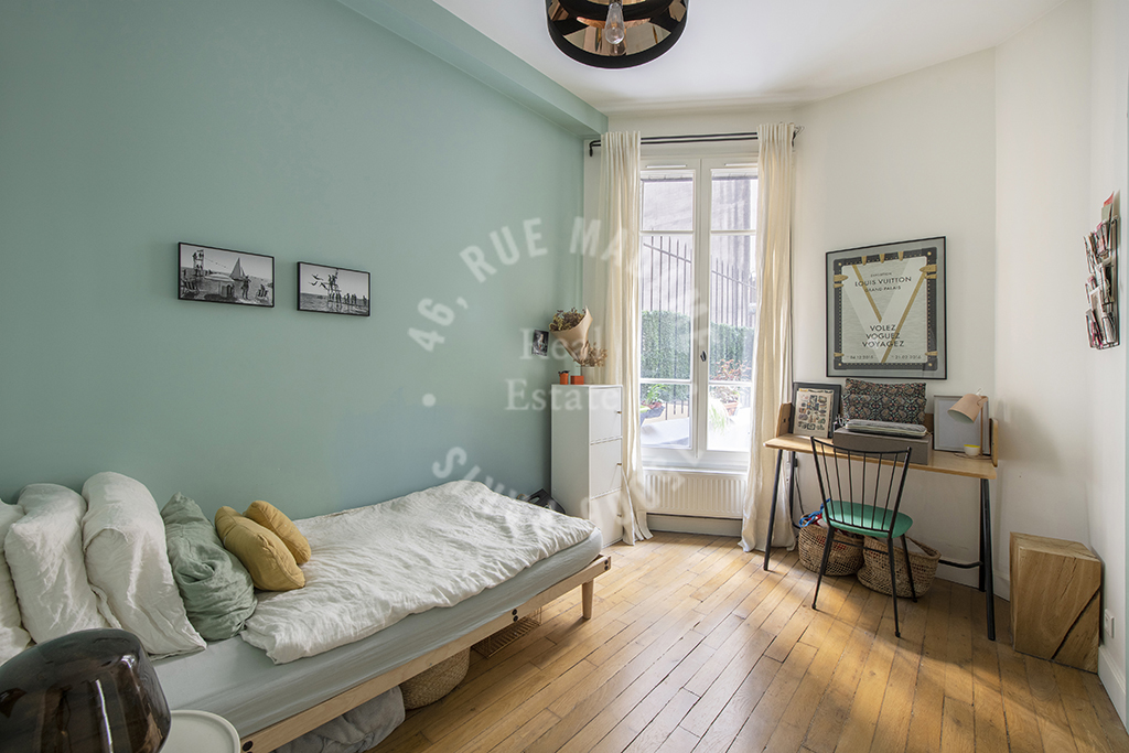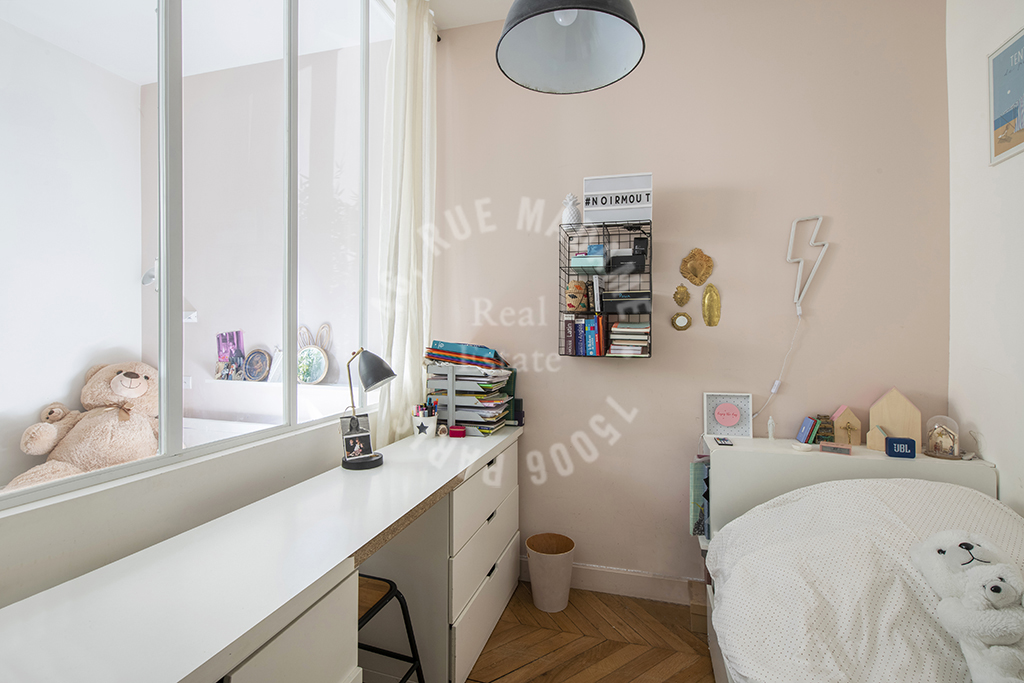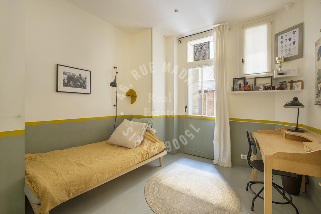 Au coeur de Passy, appartement d’angle familial de 117 m2 en parfait état. Cinq chambres. Exposition sud. Idéalement situé.