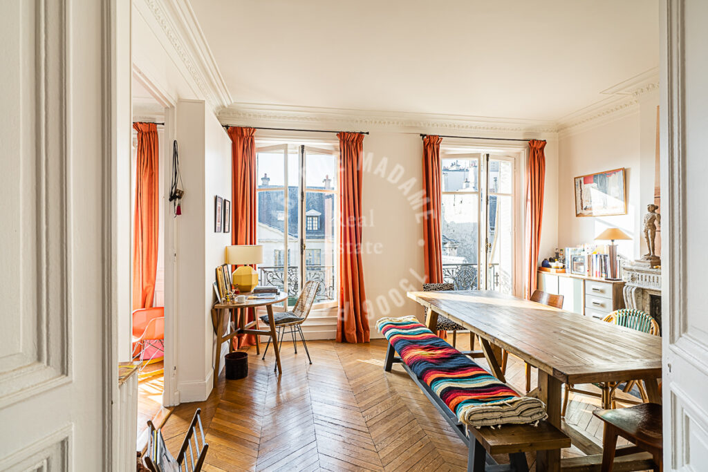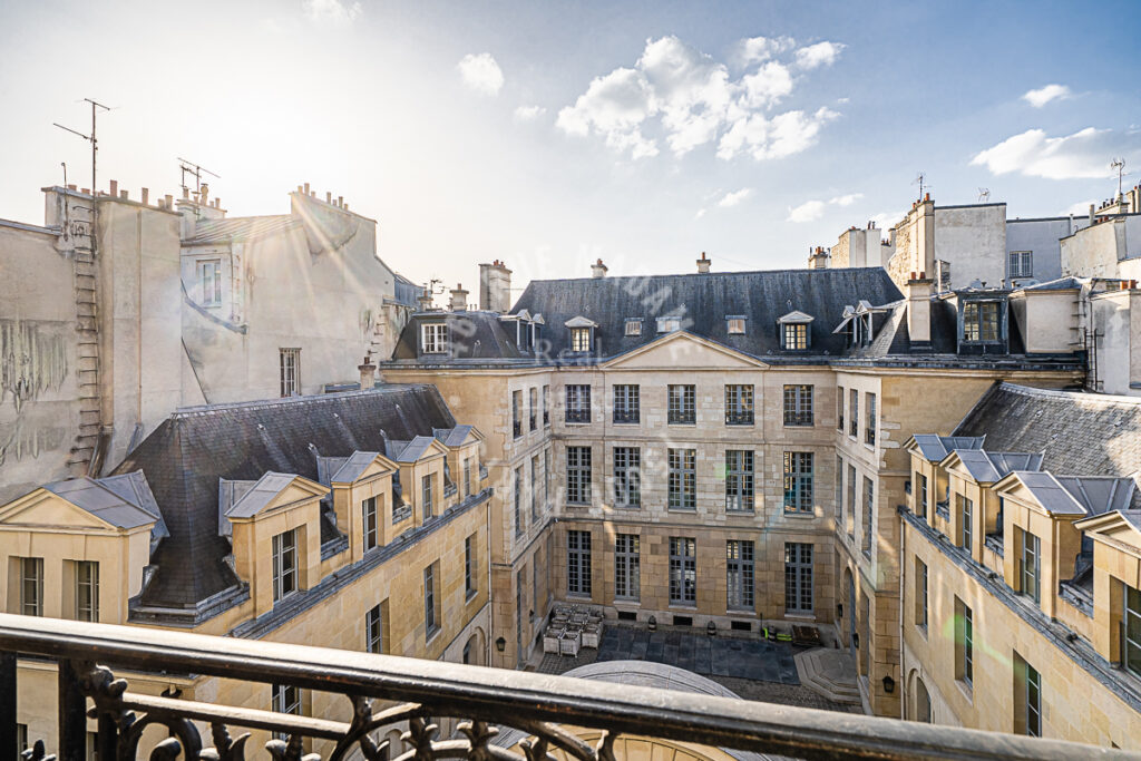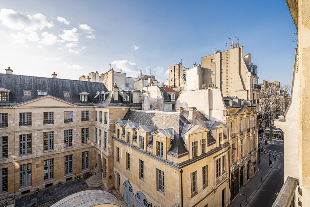 Devant l’hôtel de Cavoye, en étage élevé, appartement familial et traversant de 127 m2. Trois chambres. Vues dégagées. Très bon plan.