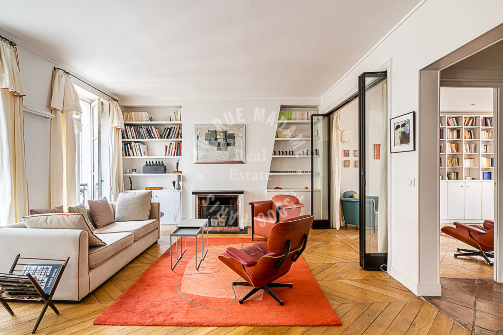 A proximité de Saint Sulpice, appartement traversant de 120 m2. 3 chambres. Bonne distribution. Triple exposition. Jolies vues dégagées.