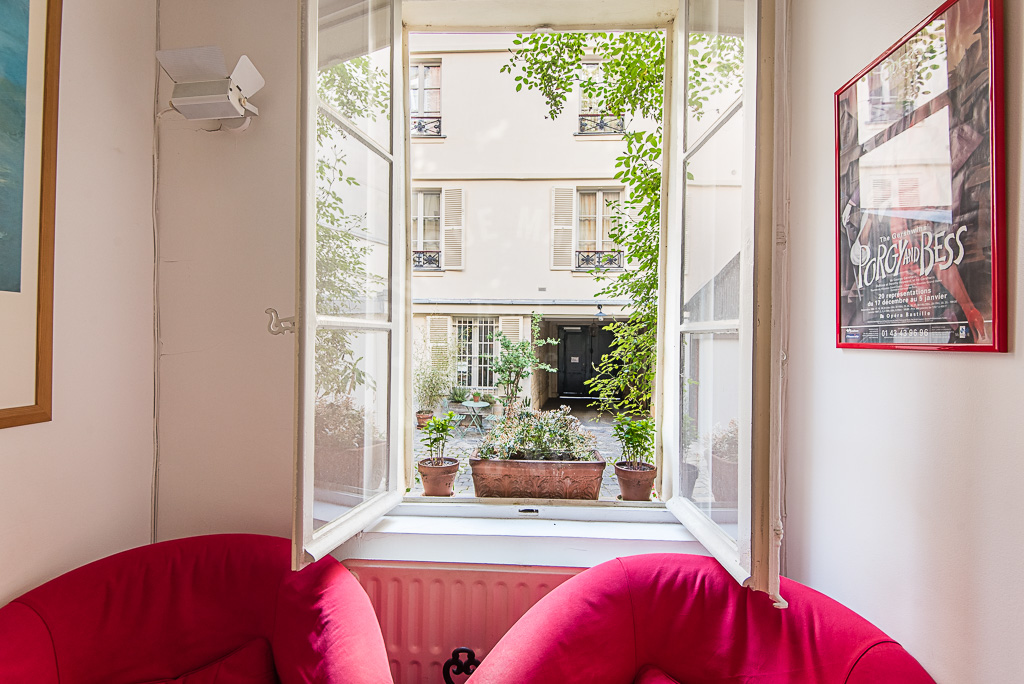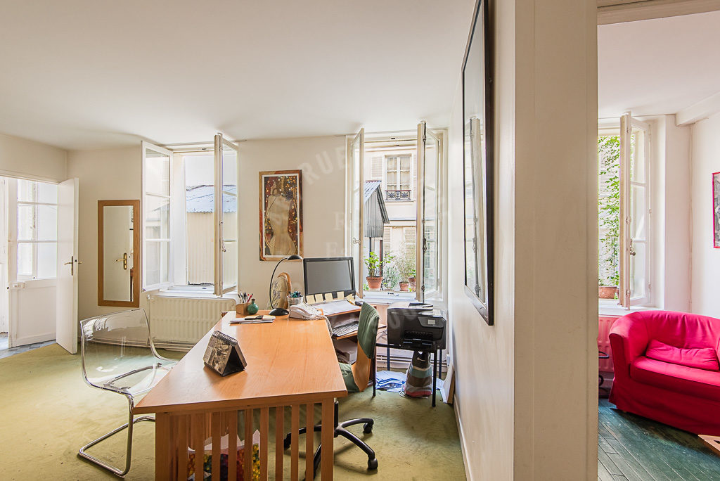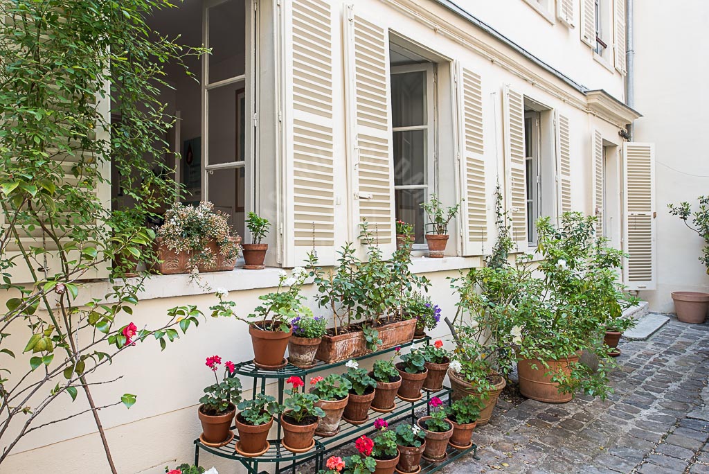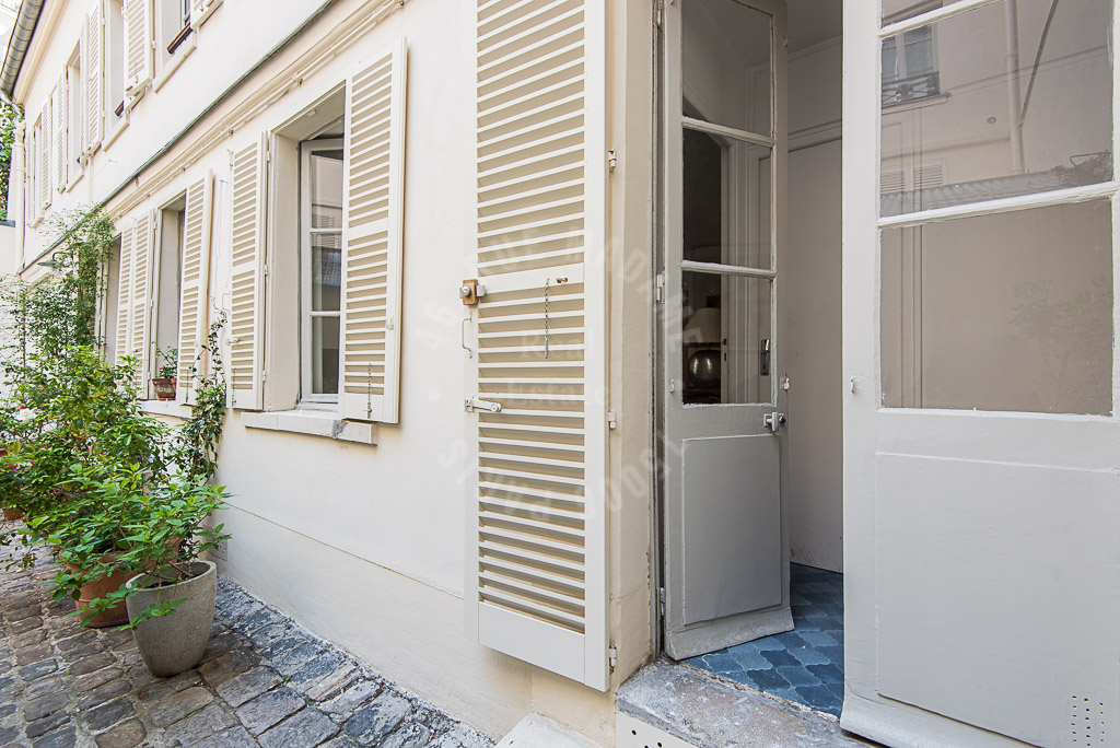 A deux pas du jardin du Luxembourg, charmant appartement de 36,74 m2 sur une jolie cour pavée fleurie. Calme absolu. Profession libérale possible.
