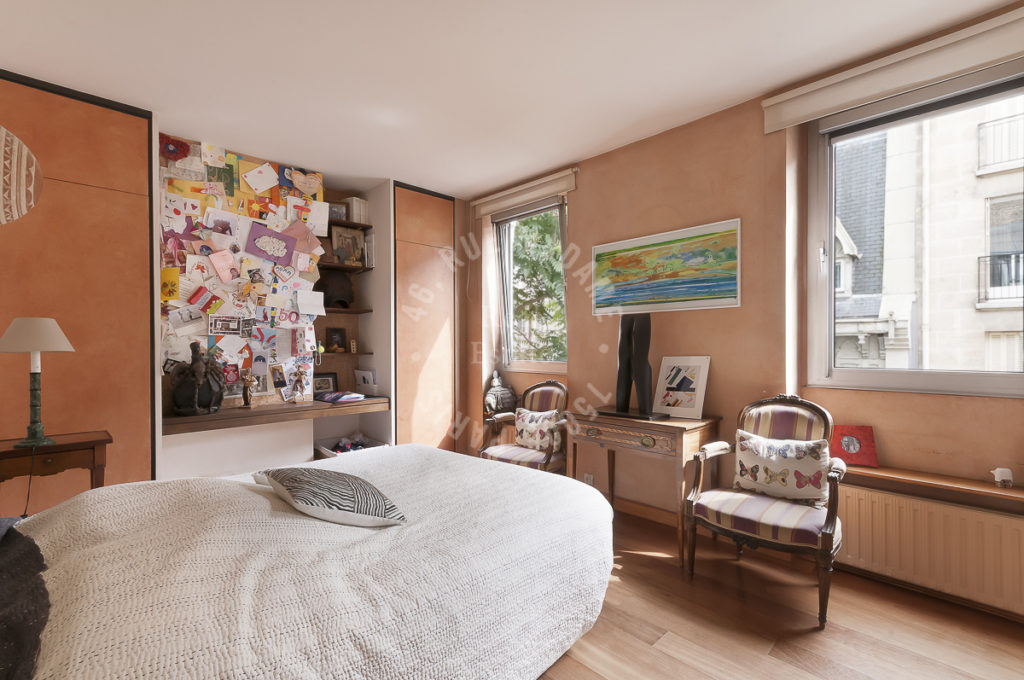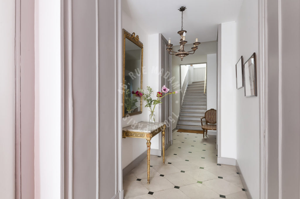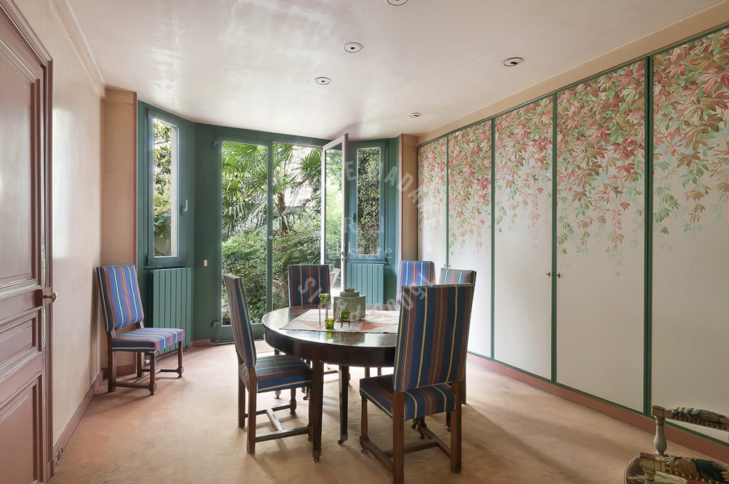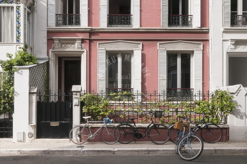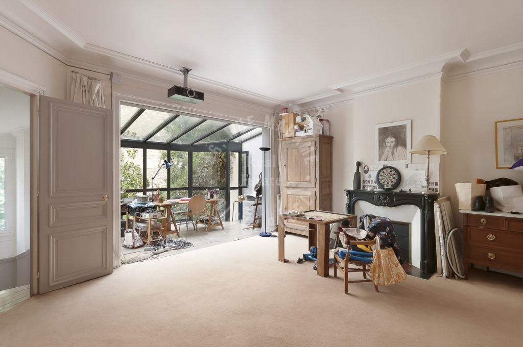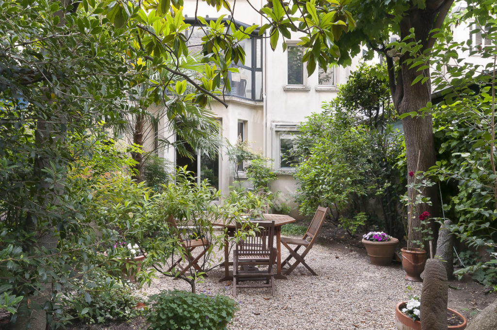 Spontini/Longchamp. Hôtel particulier familial et traversant de 350 m2 avec un jardin de 120 m2, une petite maison en annexe. Spectaculaire atelier au dernier étage. Volumes. Lumière, grand calme et aucun vis-à-vis.