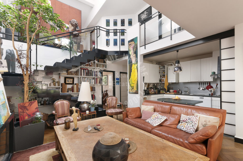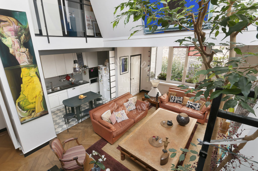 • un salon/atelier avec une cuisine ouverte (hauteur sous plafond de 4,5 m)