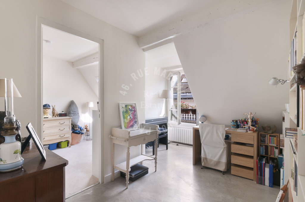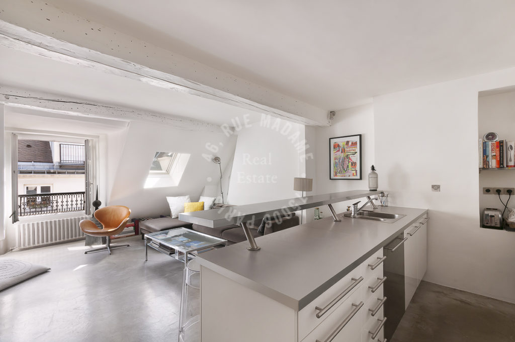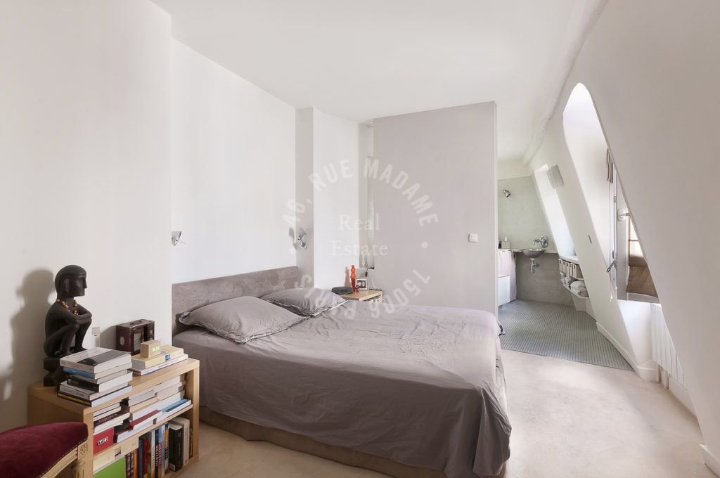 Au coeur de Saint-Germain-des-Prés, au dernier étage, appartement de trois chambres exposé sud. Charme, lumière. Plan parfait. Vis-à-vis agréables.