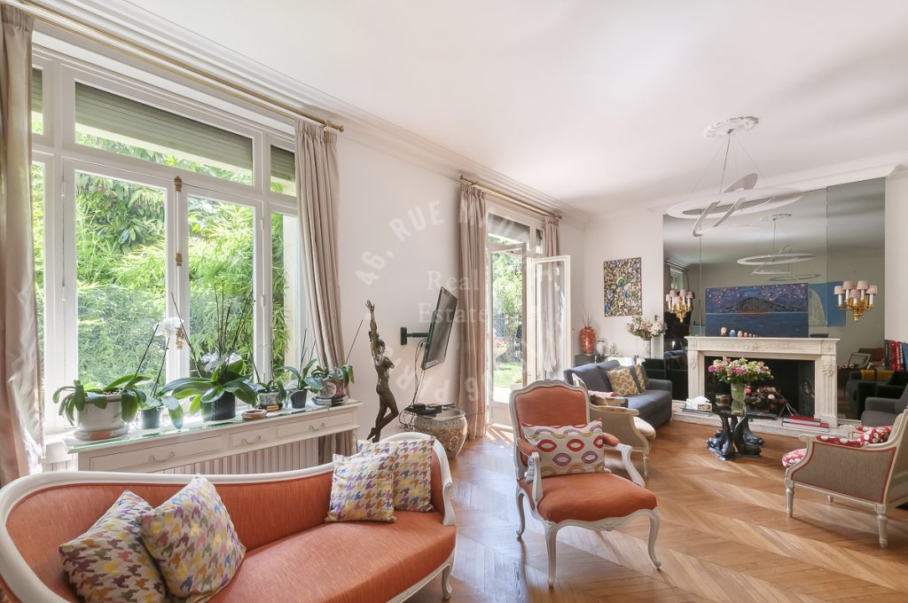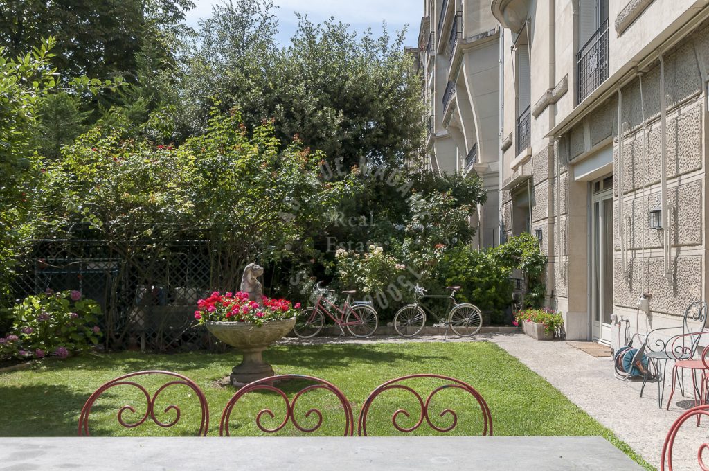 Au pied du square Lamartine, appartement familial de 229 m2 (266 m2 habitables) avec un jardin arboré de plain pied de 165 m2, à l’abris des regards. Quatre chambres.