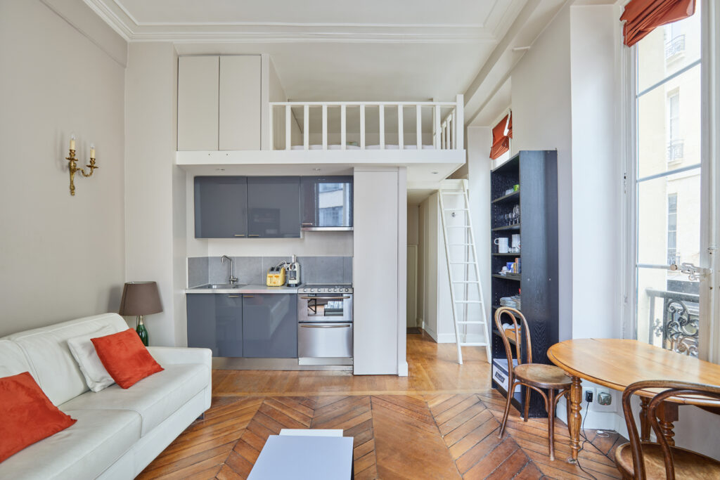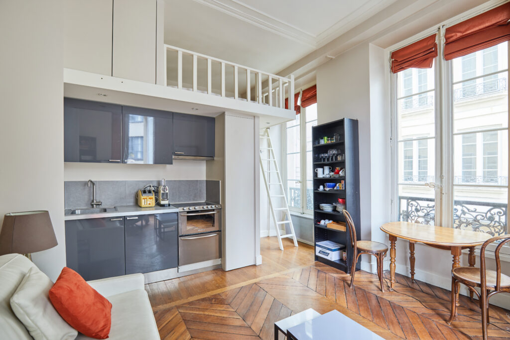 - une grande pièce avec kitchenette équipée