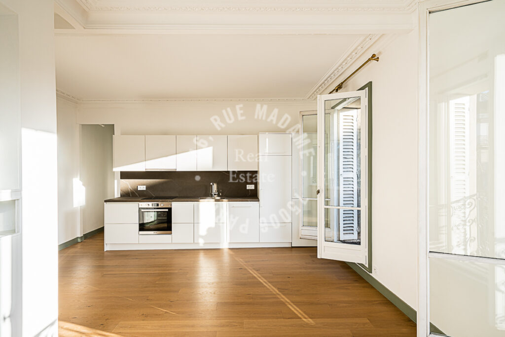 A deux pas de l’hôtel de Ville, en étage élevé, appartement rénové de 59 m2. Deux chambres.